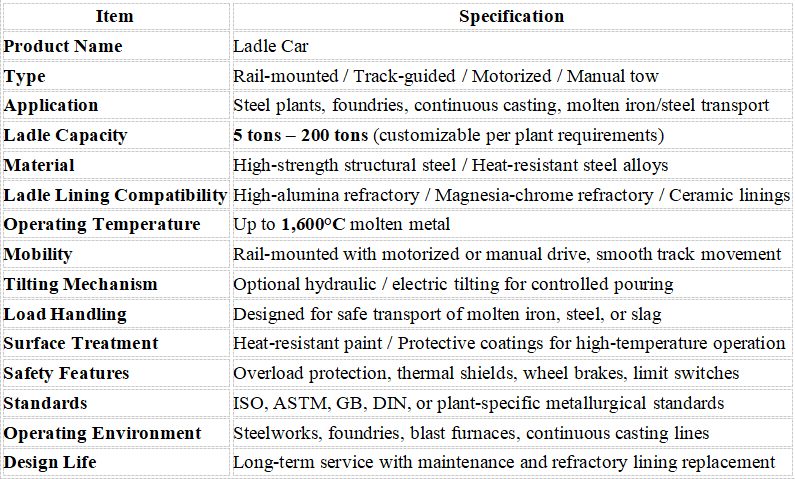 hot metal ladle tilting car